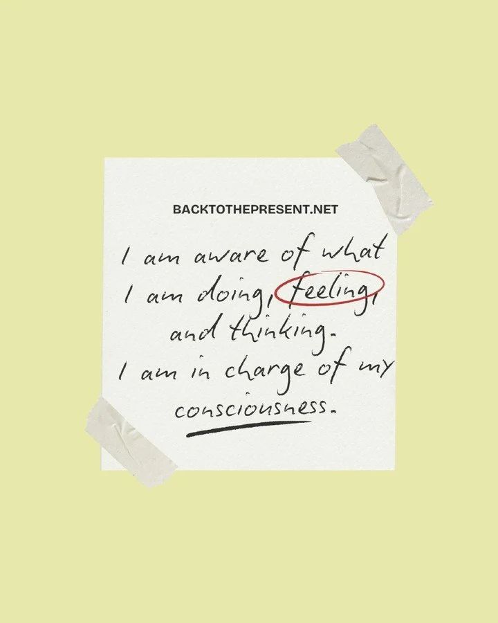 When being mindful, we are aware of what we are doing, feeling, and thinking in the present moment, without judgment.