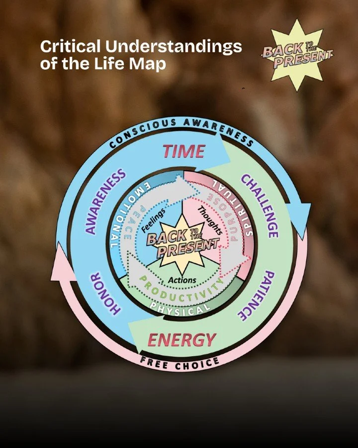 "The LIFE-MAP" is a core part of the backtothepresent process. It's a synopsis of the Critical Understandings needed to find a more mindful, joyful and fulfilling life.